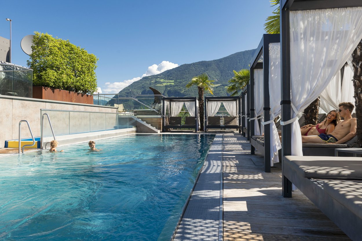 Un accogliente lettino tra fiori colorati, un’altalena dove dondolarsi in due sotto il cielo stellato e una vasca idromassaggio dove godersi momenti di relax: troverete sempre il vostro angolino del cuore, qui nel nostro hotel vicino a Bolzano con piscina esterna. Per voi, abbiamo preparato anche tante confortevoli zone appartate, così che possiate vivere indisturbati la vostra esperienza di rigenerazione, e non mancano certo i massaggi: affidatevi alle mani esperte dei nsotri massaggiatori.